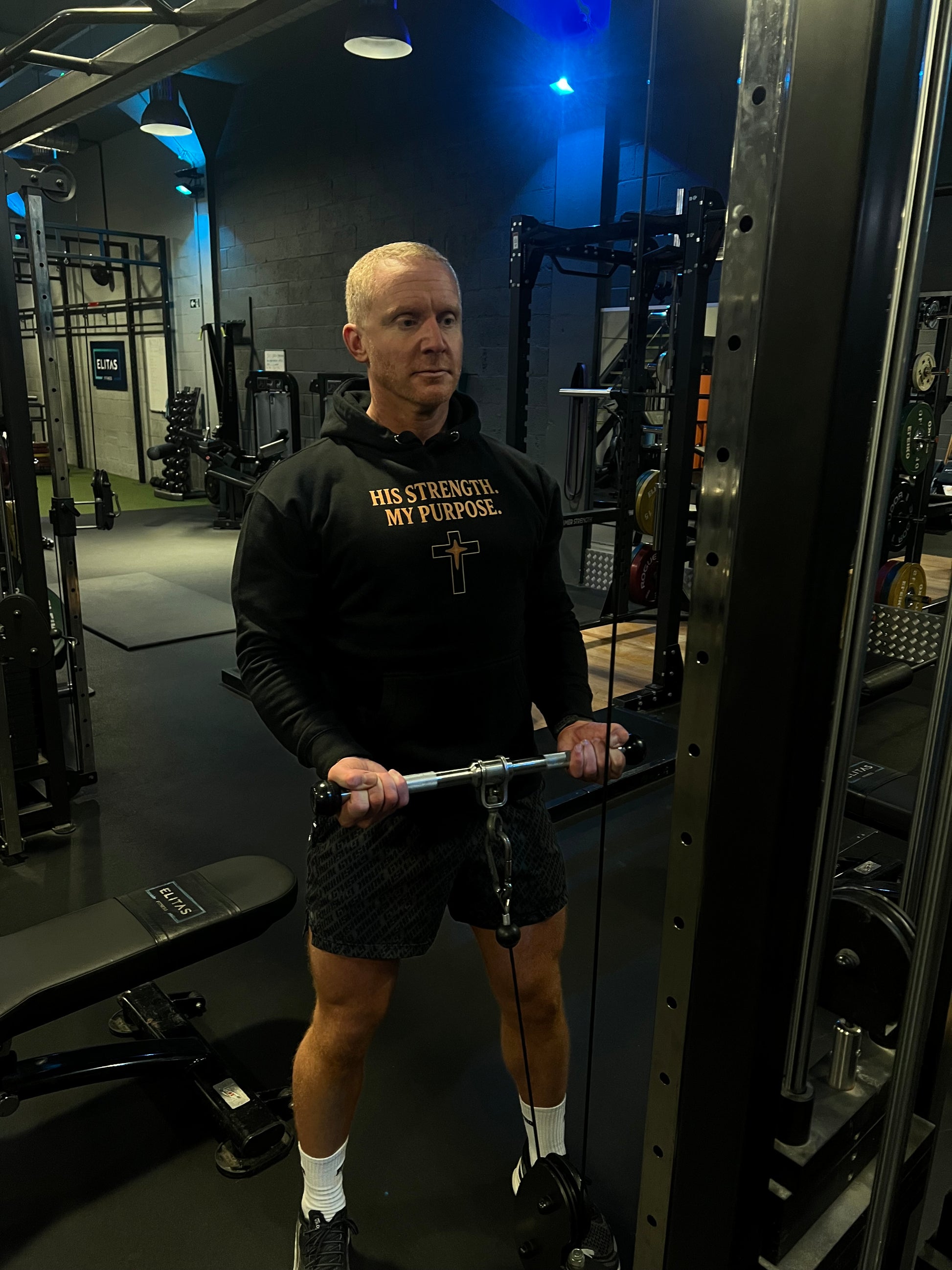 This hoodie is made for those who train with purpose—where faith fuels every rep and grit carries you through the hardest sets. It’s a reminder that strength isn’t only built by muscle, but by belief, discipline, and the resilience you bring into the gym. Wear it as motivation, wear it as a statement, and show up powered by something deeper than the weights in your hands.